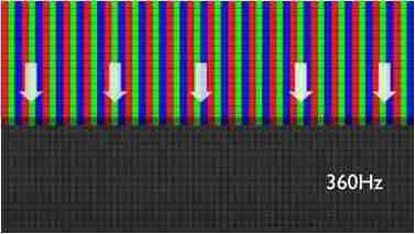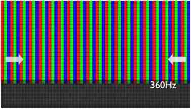 传统液晶驱动是从左到右单向进行,,,在画面更新速度愈来越愈快的情况下,,,位于驱动线路末端的右下角区域,,画素的闸极来不及在短时间内获得足够电压,,,,无法显示出正确的颜色资讯。。。 |