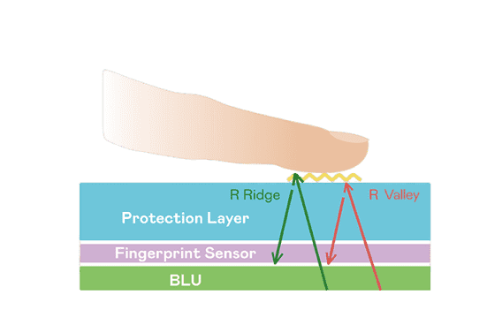超高像素密度光学感测技术能精准判定手指反射的极微弱光讯号,,即使细致指纹也可清晰辨识,,并可透过手指脉搏造成的细微灰阶变化侦测心跳,,,让身分验证更精确。。。TFT 架构优化可降低讯号传输干扰,,,达到光感测器最佳讯杂比(讯号/杂讯的比例)。。。透过增强光讯号接收强度、、、、优化感测器电路及导入特殊光学膜材料,,提高感测器敏度。。整合系统之指纹扫描装置可符合最高等级的FBI国际安全规范认证需求。。。